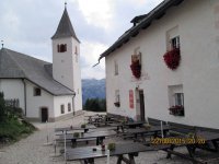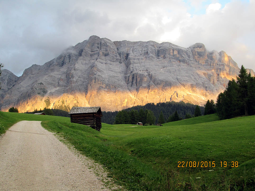 Um 14:28 Uhr in St. Lorenzen angekommen, machte ich mich sogleich an die erste Etappe. Erstmal orientieren. Ich nehme einen Umgebungsplan am Parkplatz zu Hilfe und es heißt wieder mal... erstmal Straße fahren. Man, diese Tunnel machen mich psychisch fertig! Es ist laut, eng und... naja die italienischen Autofahrer kennt man ja. Dummerweise bog ich fröhlich bei St. Martin rechts ab, ohne nochmal die Landkarte zu studieren und fuhr erstmal ca. 800 Höhenmeter in die falsche Richtung wobei ich mich ständig fragte, wann denn nun das Dorf Pederoa auftauchen würde, in dem ich links abbiegen sollte. Stattdessen landete ich in Antermoia und die Rezeptionistin eines Hotels erklärte mir, dass ich unten in St. Martin nicht rechts abbiegen sondern geradeaus hätte weiterfahren sollen. Das blöde ist, wenn man sich in solchen Gegenden verfährt, muss man nicht einfach wieder zurück sondern runter, rauf, wieder runter usw...