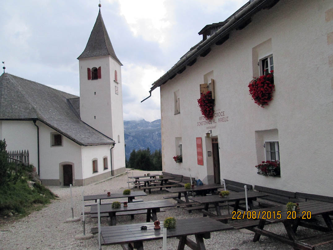 Um 18:00 Uhr erreichte ich schließlich Pederoa und fragte mich durch, wobei in dieser Gegend ja nicht jedermann deutsch spricht. Es begann zu dämmern... egal... weiter! Nochmal 800 Hm und dann den teilweise verblockten Singletrail zur Heiligkreuzhütte rüber. Die Wolken am Himmel verdichteten sich... in der Ferne ein Donnergrollen. Hoffentlich haben die überhaupt noch auf. Sehr demoralisierend, wenn man gleichzeitig noch einen kernigen Anstieg zu bewältigen hat. An der Hütte angekommen klingle ich... die Wirtin macht auf... Gerade nochmal gut gegangen.