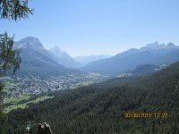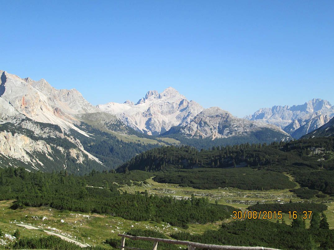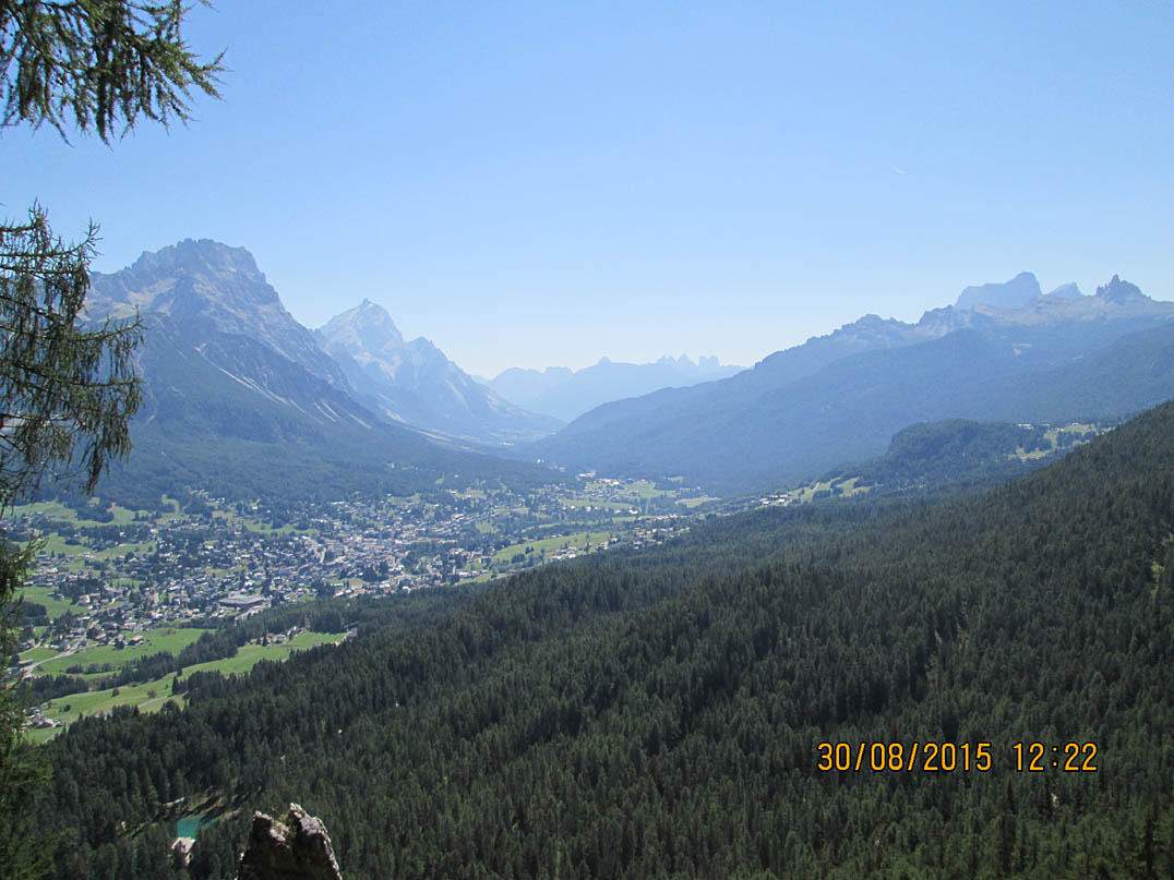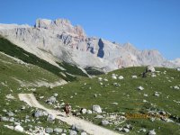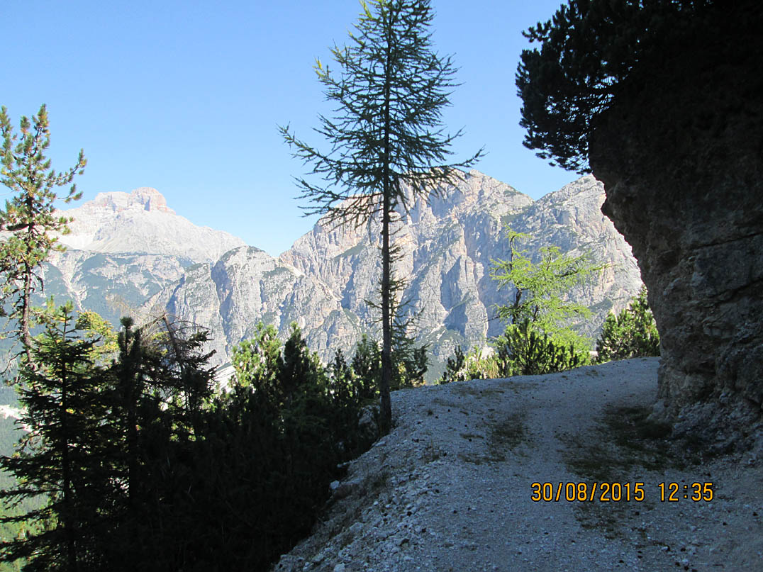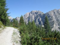 Ich starte nach dem Frühstück um 9:00 Uhr und fahre runter zur "Tofane" Seilbahn, denn dort beginnt der Weg zur "Col Druscie" Mittelstation. Von nun an bin ich ständig am Fragen und Suchen, ich packe alle zwei Kilometer meine Karten aus. Die Beschilderung ist italientypisch wieder mal sehr bescheiden und außerdem total veraltet. Ich verliere mindestens eine Stunde, fahre im Kreis (der richtige Weg wäre direkt unterhalb des Hotels losgegangen) und lande schließlich auf dem Meraner Höhenweg - einem unbeschreiblich schönen Weg, immer den Pomagnon und den Monta Cristallo rechter Hand im Blick. An dessen Ende kam dann ein komplizierter und sehr steiler Trail abwärts und ich hatte immer das Gefühl, dass der Weg ins Nichts führen könnte denn keine Menschenseele war hier unterwegs.