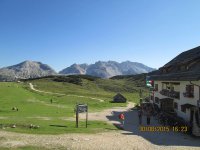 Die nächsten 500 HM zur Sennes Alm waren sehr anstrengend. Nicht nur weil es sehr heiß war und der Weg steil und unbefahrbar, ich spürte auch die nun zu Ende gehende Tour in meinen Knochen. Doch ich arbeitete mich, teils schiebend, langsam hoch und komme um ca. 16:00 Uhr an der Sennes Alm an, an welcher voll die Party abging mit Liveband usw. Ich wäre gerne länger geblieben aber ich musste ja heute noch nach Hause. Also runter zur Pederühütte an der ich vor drei Tagen zum Start der zweiten Runde schon einmal vorbeigekommen war, weiter hinunter nach St. Vigil und anschließend nach Bruneck zum Bahnhof.