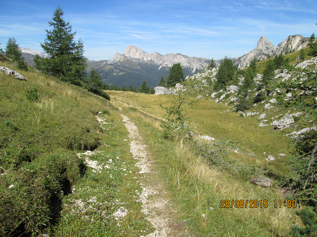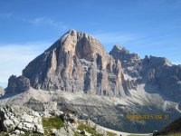 Bob und ich brachen gemeinsam auf. Nach circa dreißig Minuten trennten sich aber unsere Wege, da er links in Richtung Averau Hütte weiterzog, ich aber geradeaus in Richtung Nuvolau Hütte musste. Ich schrieb ihm noch meine E-Mail Adresse auf, dann war ich wieder alleine. Aber nicht lange, denn an der Nuvolau Hütte fragte mich ein französisches Paar nach dem Weg... Zeit, mal wieder mein Schulfranzösisch auszupacken welches sehr "auffrischungsbedürftig" ist, wie ich feststellte. Das störte die Leute aber nicht. Dann machte ich mich wie immer auf die Suche nach dem richtigen Weg und fragte mich durch. An dieser Stelle möchte ich nochmal auf die italienische Schlamperei bei den Wegweisern eingehen. Es könnte alles so viel einfacher und stressfreier ablaufen, wenn man ordentliche Wegmarkierungen vorfinden würde. Mehr als einmal habe ich es erlebt, dass ein Wegweiser in eine Richtung zeigt, man aber an der nächsten Gabelung keinen mehr vorfindet. Diese ständige Schlamperei, nicht nur bei den Beschilderungen, ist etwas was mich an diesem so wunderbaren Land ein wenig stört.