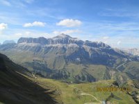 Ich kam schließlich am Falzaregropass heraus und radelte bis Arabba, wo ich vor ein paar Tagen schonmal durchkam. Nach einer Mittags-Pizza machte ich mich auf die Suche nach dem Weg zur Bergstation der Portavescovo Seilbahn, welche ich am zweiten Tag verpasst hatte. Die Beschreibung auf dem Plan, den mir die freundliche Kassiererin an der Talstation mitgegeben hatte war sehr ungenau und demzufolge bog ich auch viel zu früh links ab. Ein freundlicher Geselle, der mir im Auto entgegenkam bewahrte mich vor weiteren unnötigen Höhenmetern und erklärte mir den richtigen Weg, welcher sich als anstrengend und steil... immer steiler... erwies.