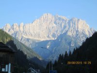 Doch ich musste weiter. Also machte ich Fotos, orientierte mich kurz und machte mich weiter an den Trail Richtung Padon Hütte. Ein wunderschöner Panoramatrail mittlerer Schwierigkeit immer mit Blick auf die Marmolada... Von der Padon Hütte ging es die Passstraße runter über Rocca und Caprile. Dort sah ich erstmals den Monte Civetta, eine imposante 3200 Meter mächtige, in der Abendsonne weiß erstrahlende Felswand an deren Fuße das Dorf Alleghe lag. Mein Tagesziel, welches ich um ca. 19:00 Uhr erreichte. Ich checkte für 35€ im Hotel "Alpenrose" ein. MANN... ein Doppelbett und eine warme Dusche. Außerdem durfte ich mein Rad mit aufs Zimmer nehmen und die Wirtin hat umsonst meine Klamotten gewaschen. Das Leben kann so einfach sein!