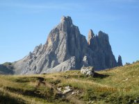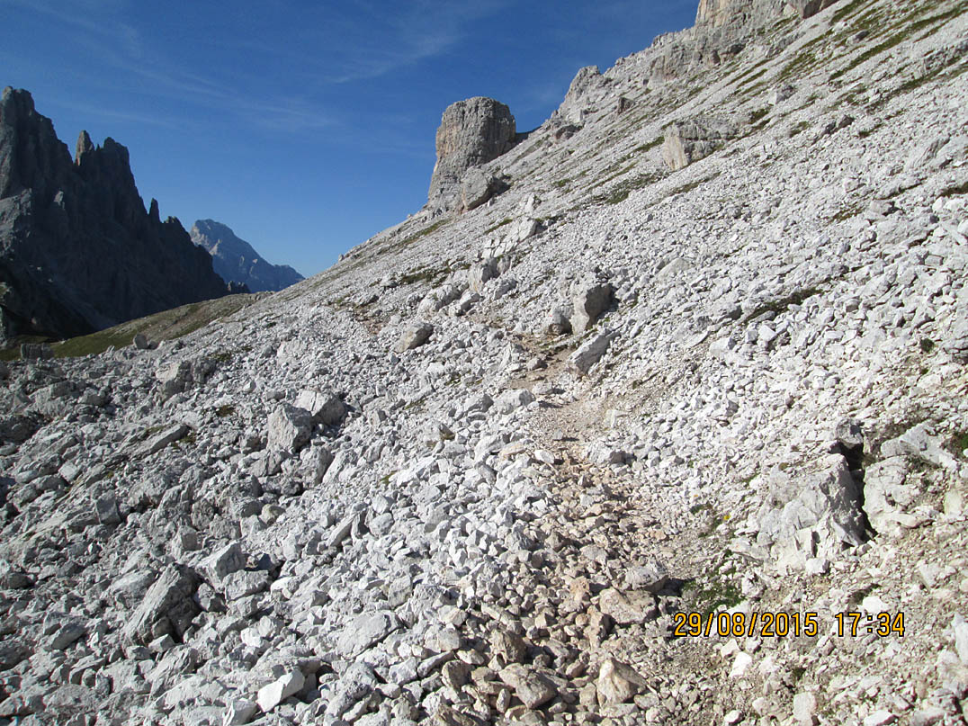 Ich verlasse das Hotel „Alpenrose“ in Alleghe mit ein bisschen Wehmut. Die Wirtsleute waren total nett, die Oma hat mir umsonst meine Wäsche gewaschen und ich bin von einer Schafherde, die direkt unterhalb des Hotels an einem Hang graste, geweckt worden. MÄÄÄÄH! Ich habe sehr gut geschlafen und mache bis zur Mittagspause auf dem Col dei Baldi mal eben 1000 HM. Ich nehme mir Zeit, den Weg zu finden und konzentriere mich an jedem neuralgischen Punkt.