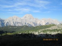 Vorher hatten mir drei sympathische Holländer den Weg erklärt, die hatten ihn aber anscheinend auch verloren, da sie aus der selben Richtung gekommen waren wie ich weitergegangen war. Nach ca. 20 Minuten Suchen im Wald und am fast senkrechten Hang der Kuhweide fand ich den Weg schließlich und setzte meinen Marsch fort. Kurz darauf war der Weg wieder für ein gutes Stück fahrbar und wunderschön! Die letzten 30 Minuten vor der Ambrizzola Scharte jedoch musste ich fast durchgehend tragen. Diese überschritten, wurde der Trail wieder besser. Die Abfahrt nach Cortina d'Ampezzo war ein Traum! Anfangs noch ein Singletrail mündete er in einen streckenweise sehr steilen Forstweg und dann in eine schmale, geteerte Serpentinenstraße.