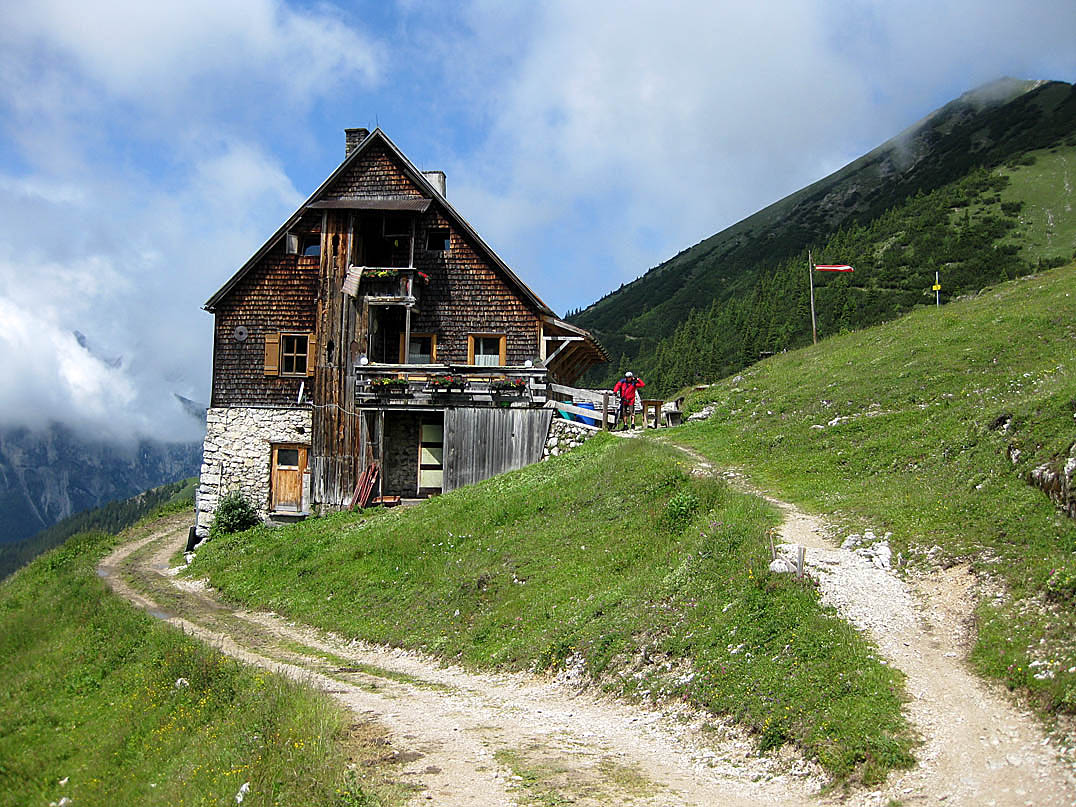 Vom Rißbachtal bei Hinterriß über die Plumsalm zur Plumsjochhütte unterhalb des Plumssattels