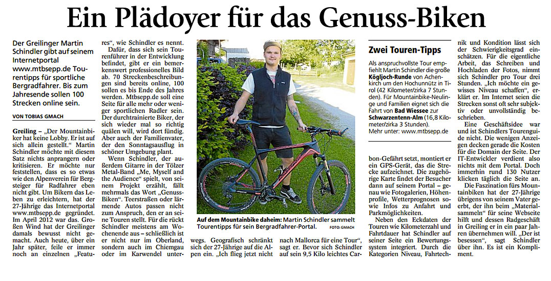 Tölzer Kurier: Ein Plädoyer für das Genuss-Biken