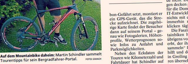Greiling – "Der Mountainbiker hat keine Lobby. Er ist auf sich allein gestellt." Martin Schindler möchte mit diesem Satz nichts anprangern oder kritisieren. Er möchte nur feststellen, dass es so etwas wie den Alpenverein für Bergsteiger für Radfahrer eben nicht gibt. Um Bikern das Leben zu erleichtern, hat der 27-Jährige das Internetportal www.mtbsepp.de gegründet. Im April 2012 war das. Großen Wind hat der Greilinger damals bewusst nicht gemacht. Auch heute, über ein Jahr später, feile er immer noch an einzelnen "Features", wie Schindler es nennt.