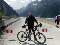 Am Schlegeisspeicher angekommen, funktionierte sie dann wieder. Gottseidank! Ich mache Fotos und radle die letzten Höhenmeter auf der Serpentinenstraße auf die Dammkrone. Ich verbringe ca. 45 min. dort und treffe eine Gruppe österreichischer Alpenüberquerer. Wir fotografieren uns gegenseitig und ich fahre weiter Richtung Pfitscherjoch.