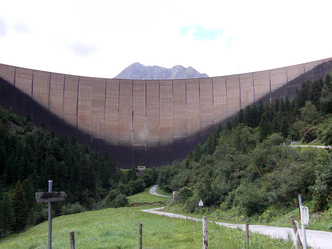 Der Schlegeisspeicher, ein Stausee mit einer 131 Meter hohen, und über 700 Meter langen Staumauer. Einer von 3 Stauseen in der Region, mit denen Strom aus Wasserkraft gewonnen wird. Eine gängige Praxis in Regionen wie dieser.