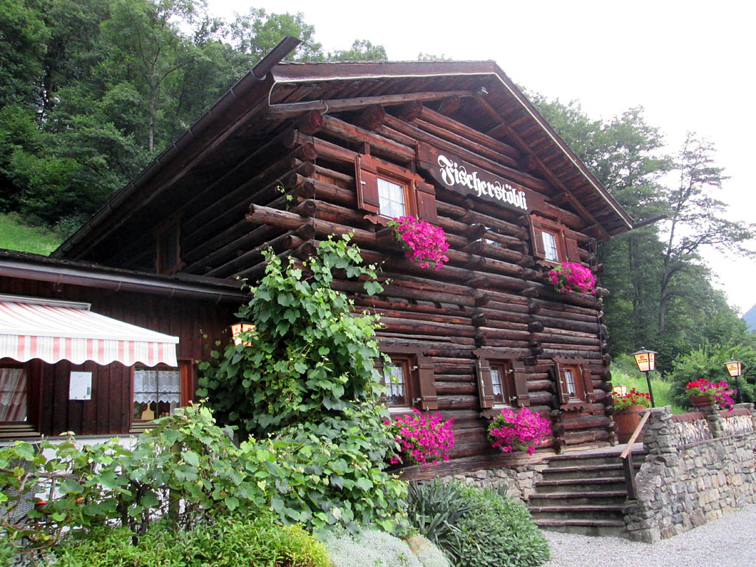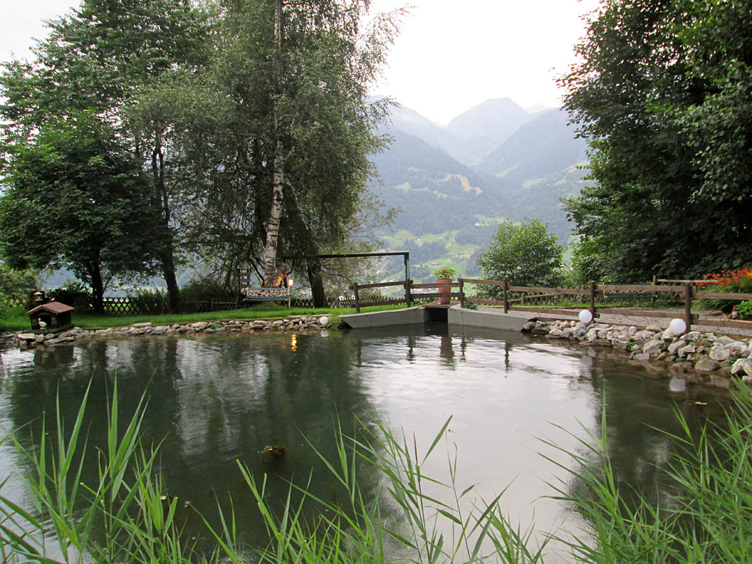 Ein Wegweiser im Ortszentrum zeigte bergauf. Was ich jedoch zu diesem Zeitpunkt nicht wusste war, dass sich dieser Ortsteil ca. 3 km Richtung Bludenz erstreckte und nach etwa 350 hm beschloss ich an einem Restaurant mit einem malerischen Fischteich davor, dem "Fischerstöbli" zu fragen. Der Wirt erklärte mir, die Pension "Monteneu", mein Quartier, befände sich unten im Ort Richtung Bludenz. "Egal", dachte ich mir und bestellte mir erstmal ein Schnitzel und ein Weißbier.