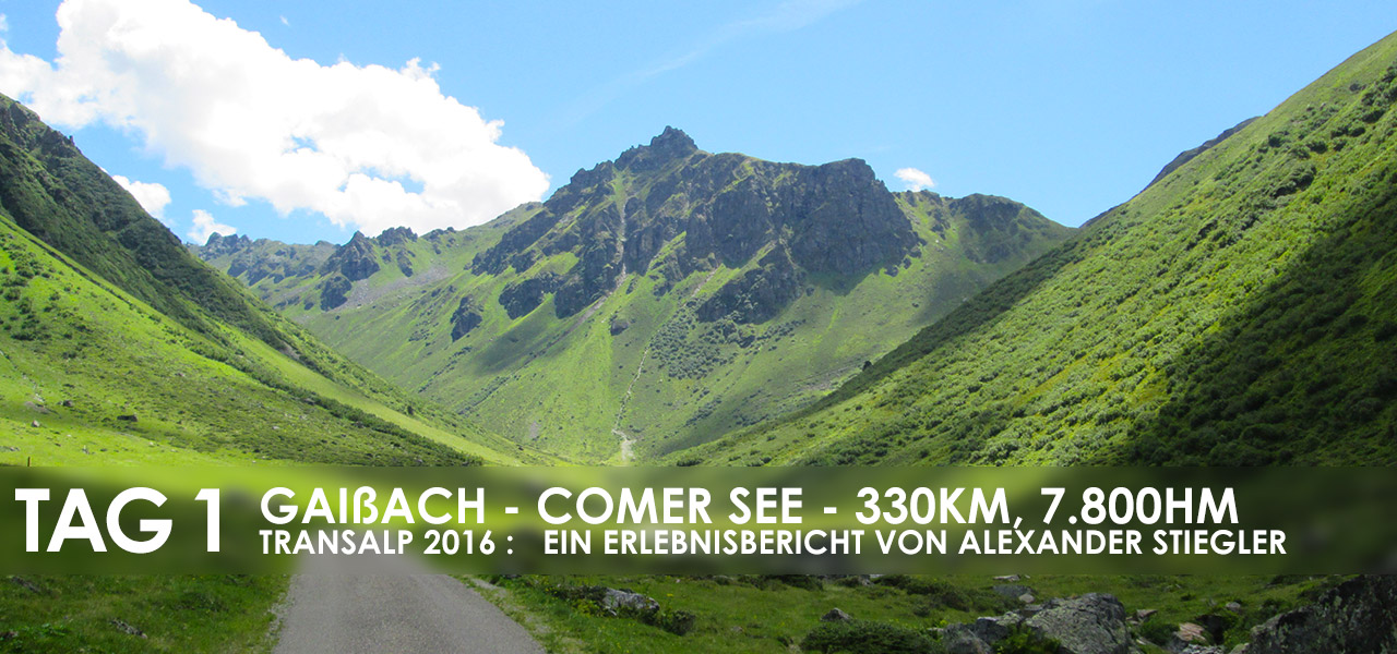 Diesmal hat es Alex von der heimischen Haustür im bayerischen Alpenvorland quer durch Tirol und die Schweiz an den Comer See im Norden Italiens verschlagen. Entlang der 330km langen Strecke durch vier Länder galt es 7800 Höhenmeter zu überwinden und sich auch von dreißig Grad Temperaturunterschied nicht unterkriegen zu lassen. Aber genug der einleitenden Worte, wir möchten euch nicht länger auf die Folter spannen - viel Spaß bei Kapitel 1: "Einrollen..."