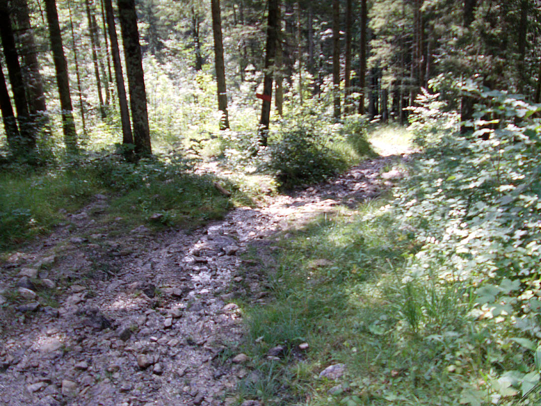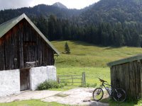 Start um 09:15 Uhr in Gaißach Untergries. Über die Röhrmoosalm (Auffahrt Fleck) hinunter zum Radweg Richtung Wildbad Kreuth. Sehr viele Schiebepassagen, zwischendurch wird der Weg auch mal zum Bach.