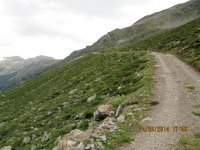 Ab St. Pankraz ist Abwechslung geboten, mal Serpentinen rauf, mal runter, mal moderate Anstiege, dazwischen ein Paar Tunnel. Kurz vorm Zoggeler Stausee überhole ich zum ersten mal die Reisegruppe aus Mannheim und Hessen. Es sollte nicht das letzte Mal sein, dass ich sie treffe. In St. Gertraud angekommen war ich eigentlich schon ziemlich kaputt, aber nach einer kurzen Kaffeepause nehme ich um 15:38 Uhr den zunächst steilen, dann moderaten Anstieg zur Kirchbergalm in Angriff, die ich ca. eine Stunde später erreiche. Kurz zuvor hatte mir noch ein netter Mitarbeiter des hiesigen Umweltschutzverbandes, welches in der alten Mühle ihr Büro hatte, telefonisch ein Bett auf der "Haselgruber Hütte" reserviert und mir mitgeteilt, dass ich mir des Wetters wegen keine Gedanken machen müsse.