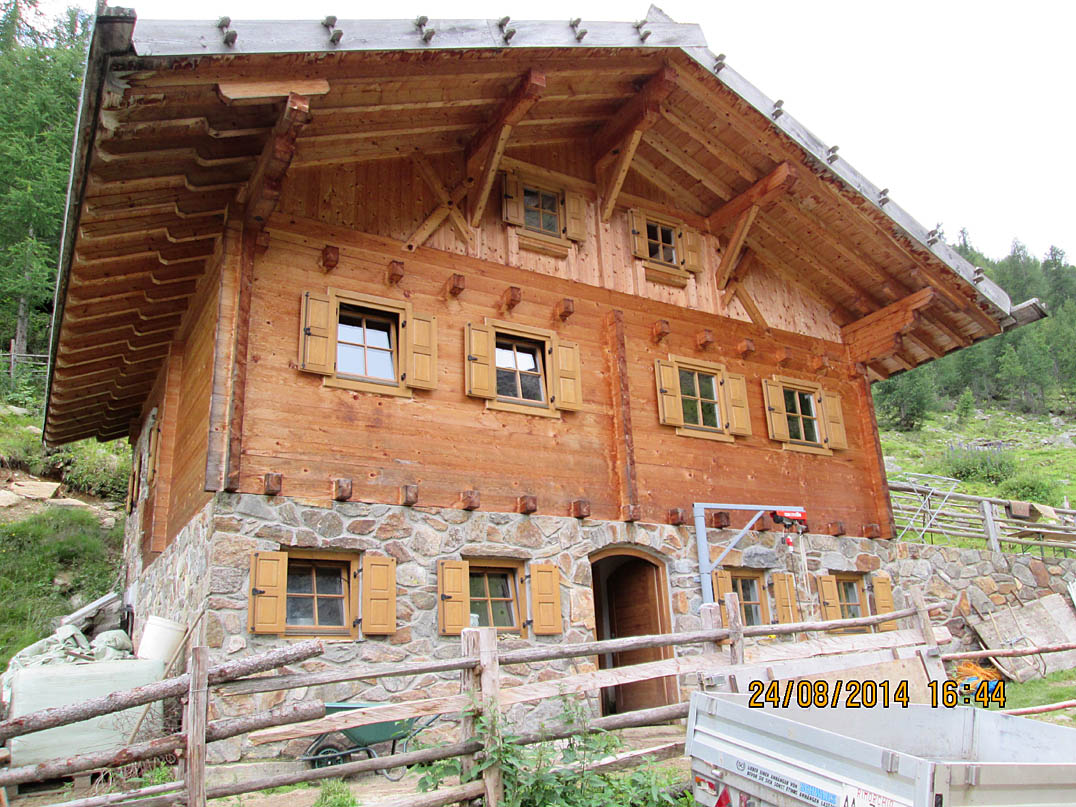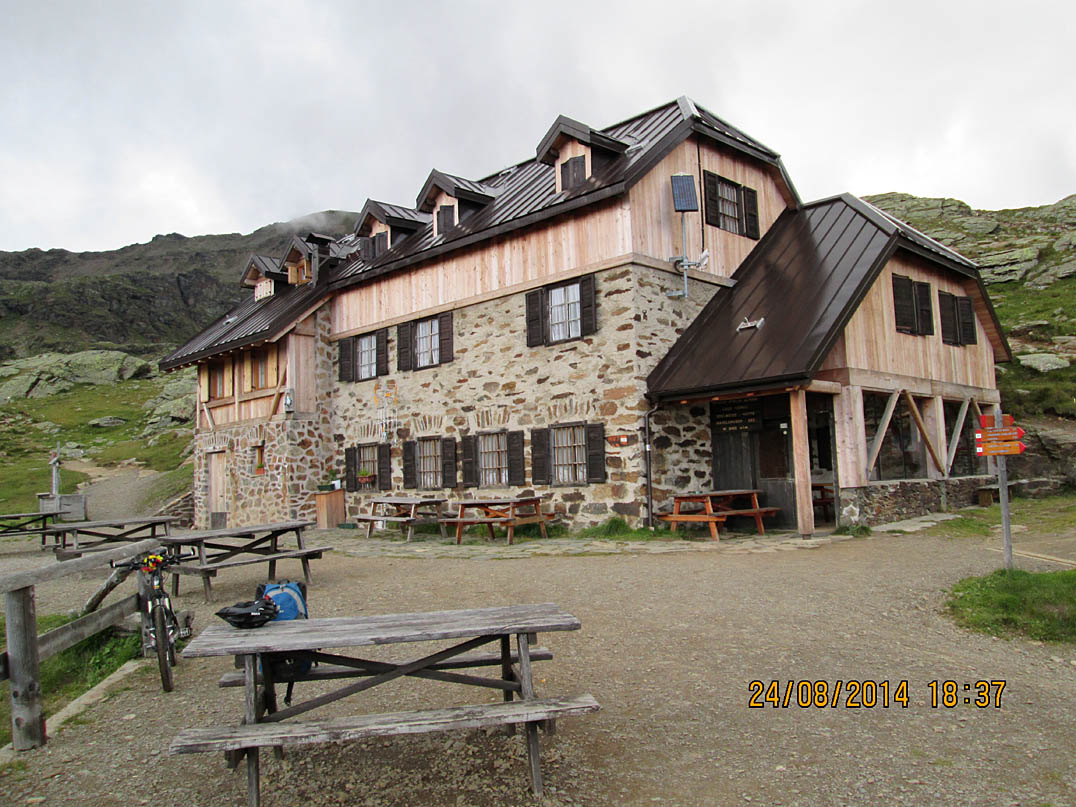Ich erreiche die "Haselgruber Hütte" auf 2450 Metern um kurz vor 19:00 Uhr und bekomme ein Mehrbettzimmer ganz für mich alleine. Eine sehr schöne Hütte mit netten Wirtsleuten. Außerdem hat man von hier aus einen wunderbaren Blick auf die "Brenta Gruppe", einem Dolomitenmassiv schräg gegenüber des Tals. Die Chefin wäscht meine Klamotten und als ich schon beim Essen war, trudeln die Hessen ein. Wir hatten noch einen lustigen Abend. Das Bett mit Frühstück und Dusche plus zwei Weißbier, zwei Gläser Rotwein und Spaghetti kostete mich 49€, aber das war mir in diesem Moment egal. Das Bett war sehr bequem und ich habe gut geschlafen.