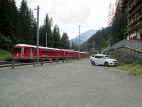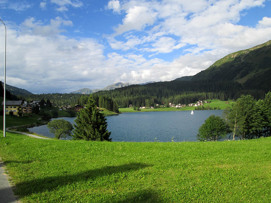 Ja genau. Ich bin 500hm durch Wald und auf steilen Wanderwegen gefahren und komme direkt an einem Bahnsteig heraus! Ein Zug stand auch schon da. So etwas kann einem wirklich nur in der Schweiz passieren! Ich war schon etwas verwundert, kurbelte jedoch zügig weiter, passierte das Dörfchen Wolfgang, den wunderschönen Davoser See und kam schließlich etwas erschöpft in Davos an.