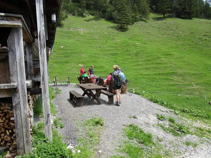 In der kleinen Hütte ist Platz für circa zwanzig Personen, auf und vor der Terrasse kann man sich bei entsprechender Witterung ebenfalls zur gemütlichen Rast niederlassen. Schade ist nur, dass die schöne Aussicht auf Guffert (2194m) und die umliegenden Berge des Rofangebirges unmittelbar von der Blaubergalm aus durch ein Stallgebäude versperrt wird. Dafür lohnt sich jedoch der kurze Aufstieg zum Gipfelkreuz des Predigtstuhls, welches sich hinterhalb der Hütte befindet. Die einsame Lage der Blaubergalm hat natürlich seinen Reiz, insbesondere weil sich deutlich weniger Menschen hierhin verirren als beispielsweise zur Gufferthütte (1475m), auch bekannt unter dem Namen Ludwig-Aschenbrenner-Hütte, die sich in der näheren Umgebung befindet.