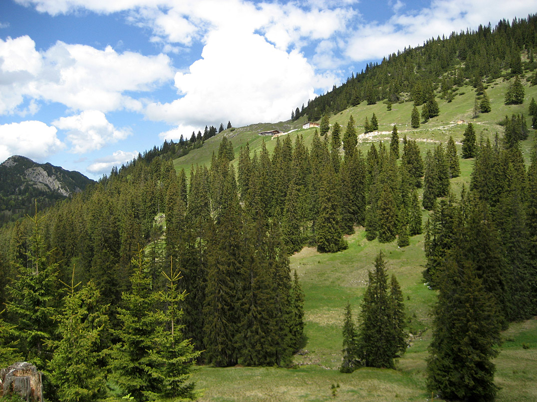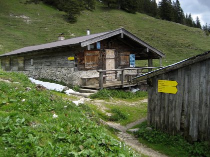 Milch, Käse, Schnäpse, Speck, Wurst, frisches Brot sowie Nudeln - Familie Sprenger stellen auf ihrer urigen Blaubergalm (1540m) viele Produkte selbst her. Kein Wunder also, dass einem beim Betreten der Hütte bereits die Käselaibe und die geräucherten Kaminwurzen ins Auge stechen. Die von Mitte Mai bis Anfang November bewirtschaftete Almhütte unterhalb des Predigtstuhls (1562m) ist mit dem Mountainbike von Achenwald erreichbar. Sie wird jedoch auch von Wanderern gerne besucht, die sich von bayerischen Wildbad Kreuth über die Königsalm (1115m) oder die Wolfsschlucht zumeist in Richtung Schildenstein (1613m) und Halserspitz (1862m) aufmachen.