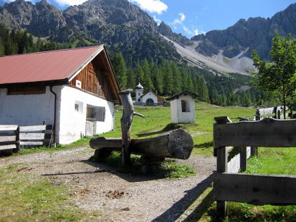 Im Talschluss des Eppzirler Tals am Fuße der mächtigen Felsflanken von Erlspitze (2405m) und Co. gelegen ist die Eppzirler Alm ein beliebtes und verhältnismäßig schnell zu erreichendes Ausflugsziel für Wanderer und Mountainbiker gleichermaßen. Auf insgesamt 1100 Hektar Almfläche beherbergt sie in den Sommermonaten rund einhundert Rinder - ein idyllisches Bild, spätestens wenn man die Alm, bestehend aus mehreren Hütten und der 2006/2007 errichteten Marienkapelle, aus der Ferne unterhalb der zerklüfteten Karwendelgipfel erblickt.