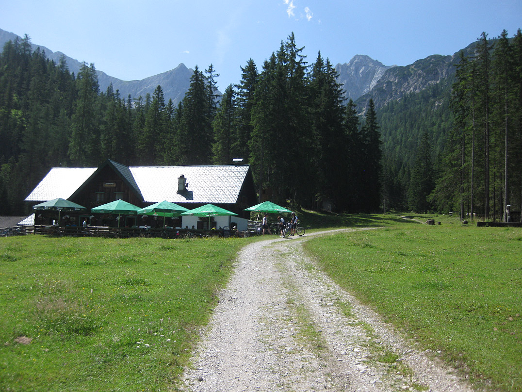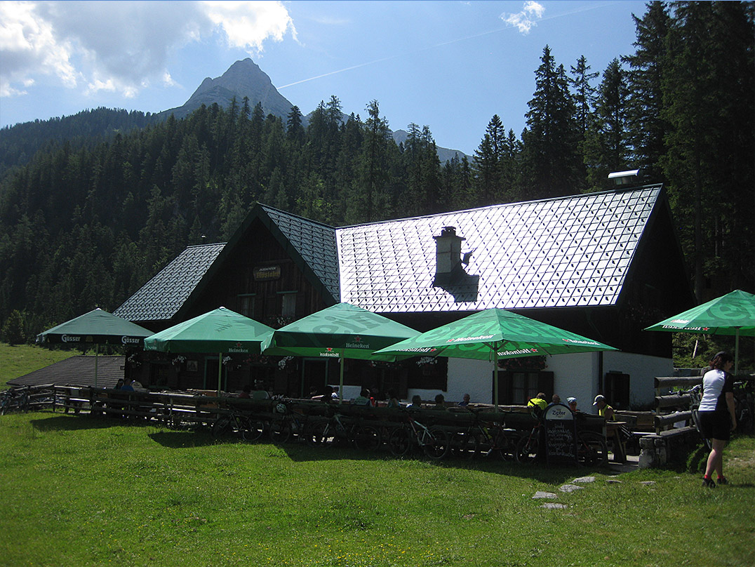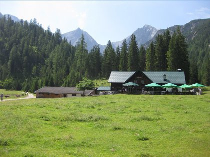 Die im Sommer geöffnete Möslalm (1262m) liegt im idyllischen Gleirschtal, einem Seitental des Hinterautals, welches sich östlich von Scharnitz befindet. Eingebettet zwischen den hohen Gipfeln der Nordkette im Süden und der Gleirsch-Halltal-Kette im Norden wird die in den Jahren 1850 - 1860 erbaute Almhütte bereits in dritter Generation von Familie Kircher bewirtschaftet. Die Alm selbst umfasst insgesamt drei Gebäude sowie die kleine "Wendelin" Kapelle aus dem Jahr 1900 und wird in erster Linie - neben der Bewirtung - landwirtschaftlich genutzt.