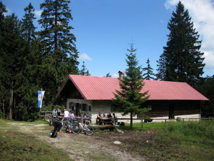 Die Orterer Alm, nicht zu verwechseln mit einer privaten Almhütte gleichen Namens südlich der benachbarten Benediktenwand (1801m), liegt östlich der Gemeinde Kochel am See gut versteckt inmitten der bergigen Landschaft des Voralpenlandes. So eingebettet die Hütte am Rande einer steil hinaufragenden Flanke unterhalb der Pessenbacher Schneid (1270m) ist, so unbekannt ist sie auch. Einzig ein kleines, handgemaltes Schild am Rande der Bundesstraße B11 auf Höhe des Weilers Pessenbach zwischen Benediktbeuern und Kochel am See weißt auf die 1952 erbaute Jausenalm hin. Über den stellenweise steil ansteigenden Forstweg ist dieses ruhige Plätzchen auch für Mountainbiker gut zu erreichen.