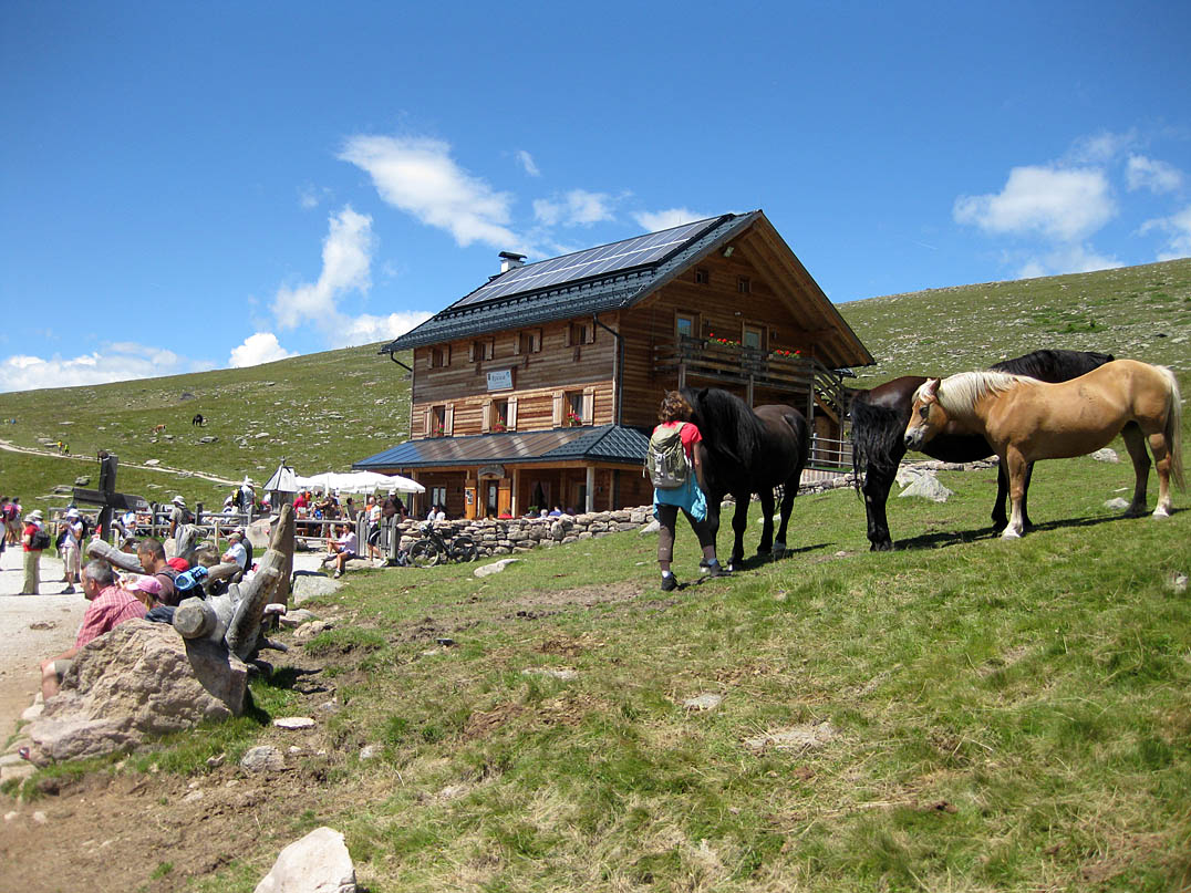 Neben dem Restaurant, in dem mehr als fünfzig Gäste zu jeder Witterung Platz finden, werden die zahlreichen Gäste auch auf der Sonnenterrasse mit Gerichten aus der traditionsreichen Küche Südtirols mit italienischem Flair verwöhnt. Übernachtungsgästen stehen komfortable und gut ausgestattete Doppelzimmer mit eigenem Bad/WC sowie selbstständiger Temperatureinstellung und eigenem Eingang mit wunderbarer Aussicht auf Sellagruppe und Langkofel zur Verfügung. Außerdem gibt es diverse Gemeinschaftszimmer mit 4, 8 und 14 Betten mit Etagendusche und Bad, Handtücher und Bettwäsche inklusive. Die Hüttenwirte bieten neben der reinen Übernachtungsmöglichkeit zusätzlich Übernachtung mit Frühstück sowie Halbpension an. Da keine Kartenzahlung möglich ist, darf das nötige Bargeld nicht vergessen werden.