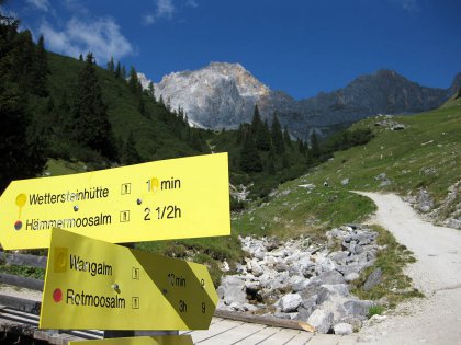Ebenso wie auf der benachbarten Wangalm (1751m) - die nur wenige hundert Meter etwas oberhalb liegt - genießt man auch von der Terrasse der Wettersteinhütte einen exzellenten Ausblick über Leutasch hinweg. Etwa auf die Hohe Munde (2662m), den markanten Berg am Ostende der Mieminger Kette, aber je Witterung und Fernsicht auch auf die zahlreichen Gipfel der benachbarten Alpenregionen.