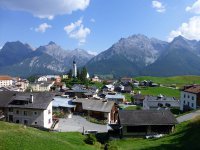 Ausgedehnte Panoramatour im Unterengadin von Susch am Inn über Lavin und Guarda nach Ftan und anschließend hinauf zur Alp Laret