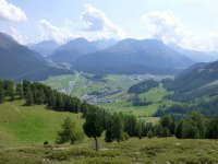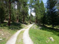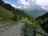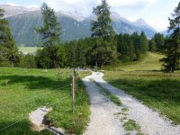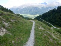Durch schöne Kiefernwälder zur Alp Muntasch, über einfache Singletrails ins Skigebiet Celerina und über Forststraßen zurück nach Samedan