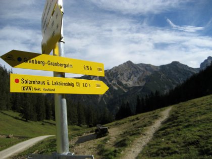 Vom Parkplatz nahe dem Niedernachkraftwerk und der Waldschänke Niedernach (818m) am Südufer des Walchensees fahren wir zunächst circa vierhundert Meter in südlicher Richtung entlang der Teerstraße und fahren anschließend links ab um einer breiten Forststraße zu folgen an welcher sich ein Wegweiser "Hochkopf" befindet. Nach etwa eineinhalb Kilometern durchfahren wir eine Spitzkehre nach links weiter Richtung Sachenbacher Alm, Hochkopf und Isartal.
