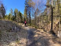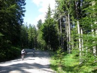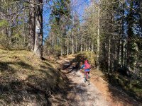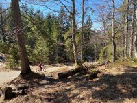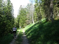 Eine kurzweilige, nicht allzu fordernde Forststraße führt vom Südufer des Walchensees hinauf zum Altlacher Hochkopf (1328m) und zur gleichnamigen Jagdhütte König Ludwig II. (1299m). Unmittelbar von der Hochkopfhütte führt der offiziell ausgewiesene Hochkopf-Trail in drei Abschnitten hinab zum Seeufer. Besonders der dritte Abschnitt ist recht ausgewaschen und nicht mehr ganz so flowig wie die ersten beiden Teilstrecken.
