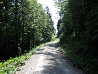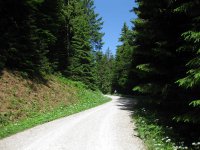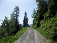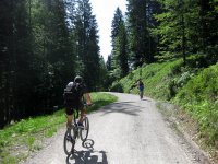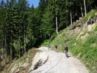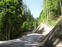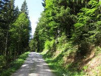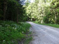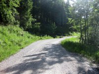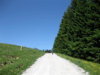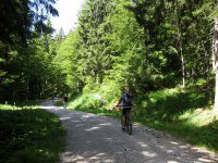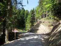 Aufgrund des Schneebruchs und der zahlreichen Stürme im vergangenen Winter ist die Wiesseer Höhenstraße derzeit gesperrt (ein Schild an der Beschrankung nahe Aueralm weist offiziell darauf hin) und eigentlich auch nur schwer passierbar. Es müssen etwa zwanzig Bäume durchfahren, überquert, umgangen und durchklettert werden... kein Spaß, nicht mit dem Mountainbike und gewiss auch nicht mit einem E-Bike. Weil die Forstarbeiten wohl vielerorts noch lange andauern werden ist nicht abzusehen ab wann der Weg wieder komplett befahrbar ist.