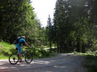 Ich bin heute am Pfingstsamstag die Tour gefahren. Relativ früh war ich am Start, so das ich dem zu erwartendem Ansturm entgehen konnte. Am Anfang geht es fast unbemerkt und stetig bergauf. Erst bei der Abfahrt merkt man diese Steigung. Bis auf ein paar Ausnahmen sind die Steigungen ingesamt sehr moderat. Aufgrund der letzten starken Regenmengen wurden einige große Steine auf den Weg gespült. Also immer mit Vorsicht und vorausschauend fahren.