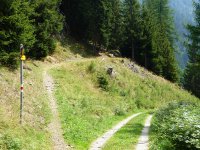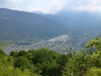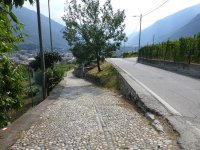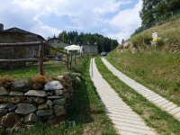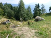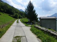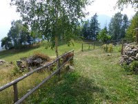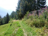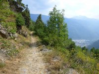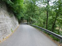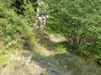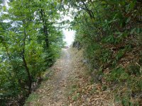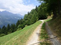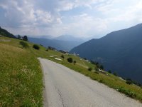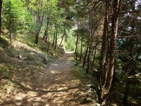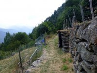 "Dort verläuft der Weg dann etwas abschüssig bevor wir nach der Curva Nicola dem Holzschild "San Romerio" folgen. Im auf und ab folgen wir einem schmalen Saumweg nach links den Hang entlang. Teilweise muss das Bike ein paar Meter geschoben werden, meistens ist der Pfad jedoch gut befahrbar." Dieser Teil war eigentlich nicht fahrbar mit E-Bike. Dies zu heben und schieben eine Qual. Ansonsten war es eine erlebnisreiche Tour. Samt E-Bike war es anstrengend.