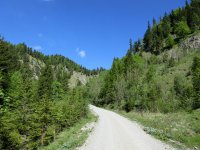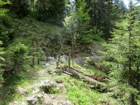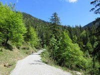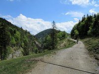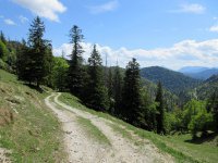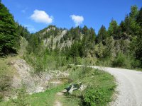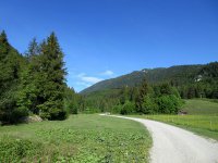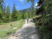 Von Petern führt die Route über das Lainltal hinauf in Richtung Glaswandscharte und von dort auf einem einfachen Singletrail mit vereinzelten, kurzen Schiebestellen hinüber zur Tanner Alm (1320m) von wo aus man bereits die Bichler Alm (1438m) erkennt. Zur bewirteten Alm gelangt man aufgrund der Beschaffenheit nur schiebend, der Ausblick ist es aber wert. Hinunter geht es über die Obere Orterer Alm (1140m).