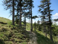 Sind die Tour heute an einem goldenen Oktobersonntag gefahren. Die Rampe hat es wirklich in sich, weniger wegen der Steilheit als wegen des Untergrunds. Nach unfreiwilligem Abstieg vom Rad musste ich dann raufschieben. Die Abzweigung in den Trail geht rechts ab von der Forststrasse. Das ist leider nicht beschrieben und so dachten wir zuerst, wir müssen den Höhenweg zur Tanneralm (was definitiv nicht möglich ist). Der Trail ist gut fahr-/schiebbar. Die Ankunft auf der Tanneralm ein Traum. Eine tolle Rundumsicht, wenn man ein paar Meter noch zu Fuß auf den kleinen Hügel spaziert. Die Bichler Alm haben wir uns geschenkt. Die Abfahrt ist wirklich ab dem Sattel bis ganz unten sehr steil, aber gut fahrbar. Wieder mal eine tolle Tour! Vielen Dank!