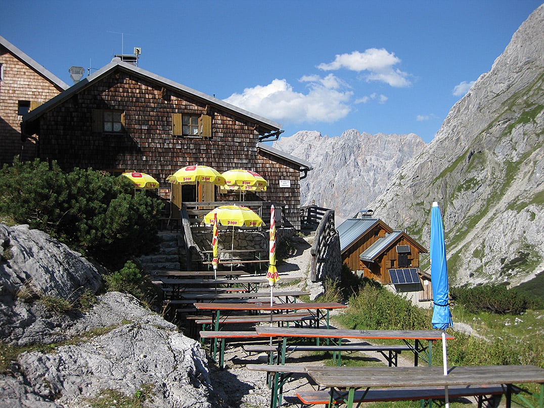 Die Lage der Hütte, der Ausblick auf die umliegenden Gipfel, der Blick zurück hinunter ins Tal auf den Seebensee und die Zugspitze (2962m) im Hintergrund sind ja eigentlich bereits Belohnung genug für die Mühen von Anfahrt und Aufstieg. Der südlich der Hütte gelegene Drachensee setzt dem Ganzen jedoch die Krone auf. Wir genießen diese einmalige Landschaft am Ufer des Sees und stärken uns bei einer gemütlichen Einkehr. Ein gelungener Höhepunkt dieser wunderbaren Bike & Hike Tour, bevor wir den Rückweg zum Radldepot und die anschließende Fahrt durch das Gaistal zurück nach Leutasch in Angriff nehmen.
