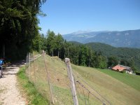 Supertour! Bei km 5,8 im spitzen Winkel nach rechts zur Straße fahren und weiter in Richtung Norden zum Gasthaus Buchwald. (Der Track verführt dazu, geradeaus den Eppan Höhenweg zu folgen.)