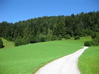 Vom Parkplatz am Mühlbergweg bei Kössen führt diese einfache und überschaubare Mountainbike-Tour zunächst auf Teerstraßen durch den Weiler Ruppen und anschließend auf einer für Kraftfahrzeuge gesperrten Forststraße vorbei an der Ochsenalm (942m) und der nahegelegenen Rinderbrachalm (942m) zur bewirteten Frankenalm (990m) am Fuße des Sonnwendköpfl (1278m) in den Chiemgauer Alpen.