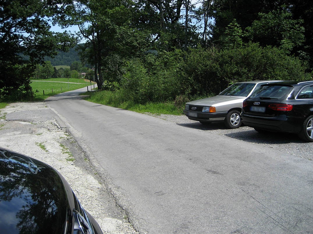 Vom Parkplatz nahe dem Haushamer Ortsteil Rain fahren wir entlang der verkehrsberuhigten Gindelalmstraße bereits auf dem ersten Kilometer kontinuierlich und zunehmend ansteigend bergauf. Die Straße führt nach nur wenigen Momenten in den Wald hinein und wird uns erst kurz vor dem Ziel wieder in schattenfreies Gebiet entlassen. Ein Umstand, der jedoch an heißen Sommertagen durchaus auch seine Vorteile in sich birgt, schließlich mag nicht jeder sommerliche heiße und sonnige Temperaturen.
