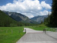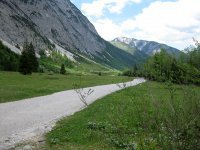 Eine gemütliche Mountainbike-Ausflugstour entlang der Mautstraße von Pertisau am Achensee hinein in die Karwendeltäler bis zur Gramaialm (1263m) am hinteren Ende des Falzthurntals. Vor der atemberaubenden Kulisse der umliegenden Felswände und Gipfel lässt es sich angenehm pausieren, ehe man nahezu mühelos über den Wanderweg vorbei am Alpengasthof Falzthurn (1077m) zurück zum Ausgangspunkt rollt.