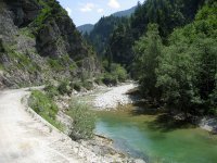 Bin die Tour am 4.7.15 gefahren, in der angegebenen Richtung, das war gut so! Abfahrt von der Gufferthütte (Blick auf die Guffert Nordwand) ins Kaisertal auf ziemlich grobem Schotter. Abkühlungs-/Bademöglichkeiten in der Kaiserklamm sollte man nutzen, denn der Rückweg über Steinberg zieht sich. Letzte Rast im Waldhäusl und den Blick auf die Guffert Südwand genießen.