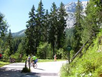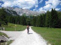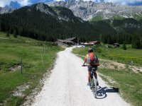 Schöner kann man fast nicht in die Welt des Mountainbike-Sports eintauchen als auf der kurzen und einfachen MTB-Tour von Leutasch in Tirol hinein ins Gaistal und hinauf zur Hämmermoosalm (1417m) am Fuße des eindrucksvollen Wettersteingebirges. Das sehenswerte Panorama entschädigt für die bedauerlicherweise zu kurz ausfallende Distanz.