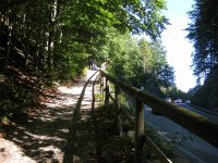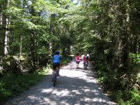 Schöne kurze, aber nicht unanstrengende Tour mit hervorragender Aussicht und dem Bonus Bademöglichkeit im Walchensee. Bergauf grundsätzlich gut zu fahren, nur die beschriebene zweite Rampe ist wirklich brutal steil und dafür auch noch relativ lang, hat mir gestern fast den Stecker gezogen. Die Motorisierten unter den Radlern (d.h. nach gestrigem Eindruck fast alle, die hier hochfahren) haben dieses Problem natürlich weniger; ich könnte mir aber vorstellen, dass die Passage selbst dann technisch gar nicht mal so einfach ist. Die Maschinen-PS muss man bei fast 30% ja auch erstmal auf die schottrige Straße bringen. Der Rest ist dann im Vergleich eher unproblematisch. Abwärts geht es die meiste Zeit auf demselben breiten Fahrweg wieder hinunter, wobei der grobe Schotter dafür sorgt, dass einem nicht allzu schnell langweilig wird. Zwischendrin läßt sich entlang der Skipiste ein paar Mal auf kleineren Pfaden abkürzen, kurz vor dem Kesselbergsattel habe ich noch ein Stückchen Singletrail nach Urfeld gefunden. Insgesamt ist die Abfahrt technisch nicht wirklich aufregend, fährt sich aber doch ganz nett. Die angegebenen 1:20 Stunden haben als reine Fahrzeit ganz gut gepasst für mich. Es lohnt sich aber auf jeden Fall, sich Oben ein wenig Zeit zu nehmen um zum Herzogstand hochzulaufen. Die Aussicht ist vielleicht das Hauptargument für diese Tour. Für einen Montag im September war es einigermaßen voll am Berg; am Wochenende würde ich mir nach Möglichkeit etwas Anderes suchen.