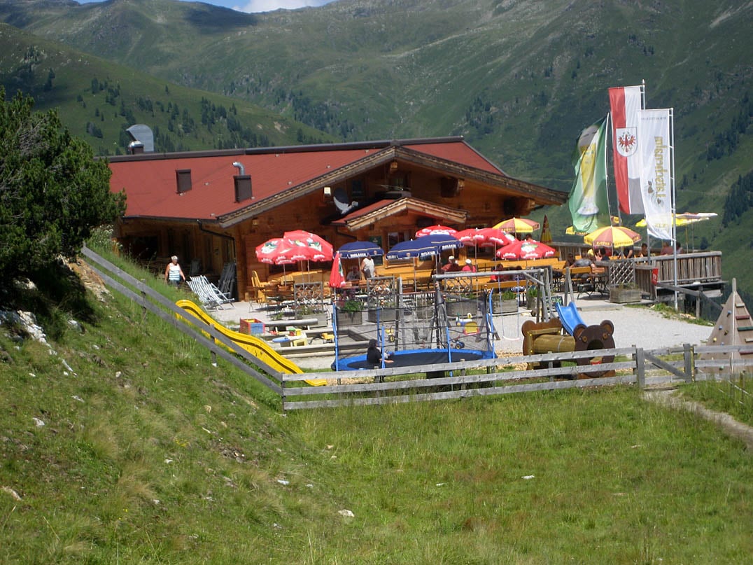 Von der Kreuzwiesenalm verläuft der Weg nun meist oberhalb der Waldgrenze an der Südflanke des Isskogel (2263m) entlang. Mit abwechselnd positiver und negativer Steigung geht es kurzweilig voran - stets mit einem Auge auf der Strecke während das andere beeindruckt von der Kulisse der Berge abschweift und in die Ferne blickt. Auf etwa zehn Kilometern Distanz überqueren wir Bachläufe, passieren kleine Almansiedlungen und erfreuen uns an der Idylle der alpinen Landschaft. Aufgrund des abwechslungsreichen Steigungsverlaufs sollte man sich jedoch nicht zu sehr vom traumhaften Panorama ablenken lassen und bei kurzen Anstiegen lieber bedacht in die Pedale treten - kurz vor Ende der weitläufigen Passage zur Latschenalm erwartet einen noch ein letztes steiles Stück, ehe man den höchstgelegenen Punkt der Tour erreicht. Die Latschenalm (1950m) liegt nahe der Bergstation der Isskogelbahn inmitten des Skigebiets Zillertal-Arena und ist daher auch in den Sommermonaten bequem für Touristen aller Art erreichbar. Wie könnte es bei dieser Tour anders sein, erwartet einen auf der Latschenalm ebenso ein atemberaubendes Panorama bis hin zu den schneebedeckten Gletschern auf der gegenüberliegenden Seite des Tals. Da wir die Strecke Kreuzwiesenalm - Latschenalm auch wieder zurück müssen, erholen wir uns nur kurz und warten mit der Einkehr noch etwas.
