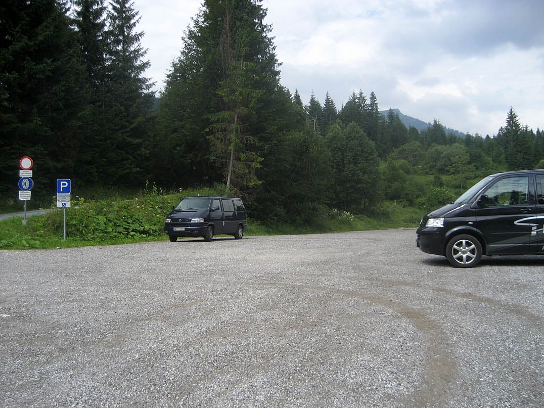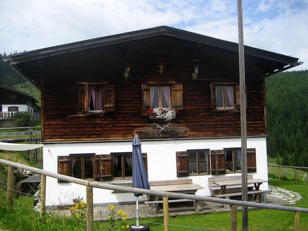 Der Weg verläuft nach kurzem Bergab in Richtung Norden plötzlich südwestlich weiter und führt oberhalb der Almflächen entlang der schattigen Nordflanke der Hochplatte (1814m) kontinuierlich hinauf. Immer auf dem Hauptweg bleibend, erreichen wir etwa zwei Kilometer mit zwischenzeitlich leichtem bergab die ebenfalls unbewirtete Großzemmalm (1550m). Der Weg führt weiter durch die Almgebäude hindurch nach Nordwesten und an den Ausläufern der Marbichler Spitze (1898m) vorbei bis hin zur Lämpereralm (1718m). Dabei vernachlässigen wir den ein oder anderen verzweigenden Weg und halten uns auf dem Hauptweg durch das weitreichende Almgebiet das langsam aber sicher karger wird und vereinzelte Stellen mit Geröll und Fels die zuvor so dominierenden Nadelbäume des Bergwaldes ablösen. Von der landwirtschaftlich genutzten Lämpereralm genießen wir den großzügigen Ausblick ins Umland und die umliegenden Berggipfel.
