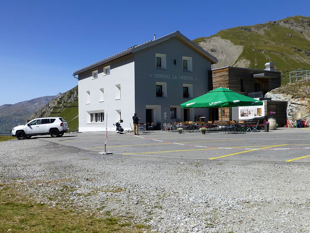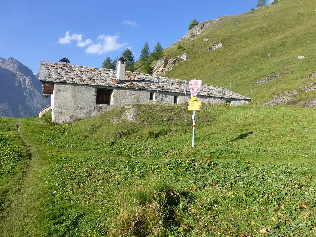 Vorbei an der Alp Güglia (2196m) kommen wir der Passhöhe immer näher. Von weitem sehen wir bereits den markanten, Theaterturm mit seiner roten Fassade. Am Julierpass (2284m) angekommen entdecken wir außerdem einen kleinen Kiosk, der sich für eine kurze Rast anbietet, bevor es auf der Passtraße nach Bivio (1769m) wieder fünfhundert Tiefenmeter hinab geht. Entlang zahlreicher Kehren, vorbei am Julier–Hospiz (2238m), rollen wir durch die traumhafte Hochgebirgslandschaft und gelangen so bis nach Bivio. Gleich hinter dem Ortschild geht es links hinauf - der unübersehbare Wegweiser zeigt uns die Richtung zum Septimerpass (Pass da Sett), zu welchem wir über die Bikeroute 667 (Septimer Transversale) kommen.
