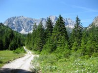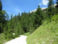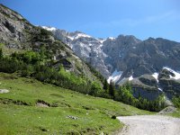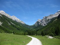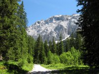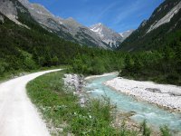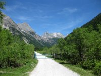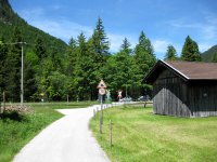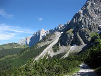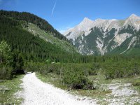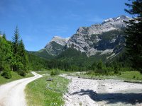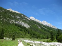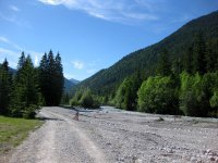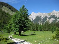 Von Hinterriß führt die als "Karwendel-Klassiker" bekannte Tour über die Vordersbachau zur bewirteten Vereiner Alm (1406m) und anschließend hinunter nach Mittenwald. Von dort geht es nach Scharnitz und über das malerische Karwendeltal hinauf zum Karwendelhaus (1771m). Über den Hochalmsattel und den kleinen Ahornboden gelangt man zurück nach Hinterriß. Gute Kondition dringend erforderlich.