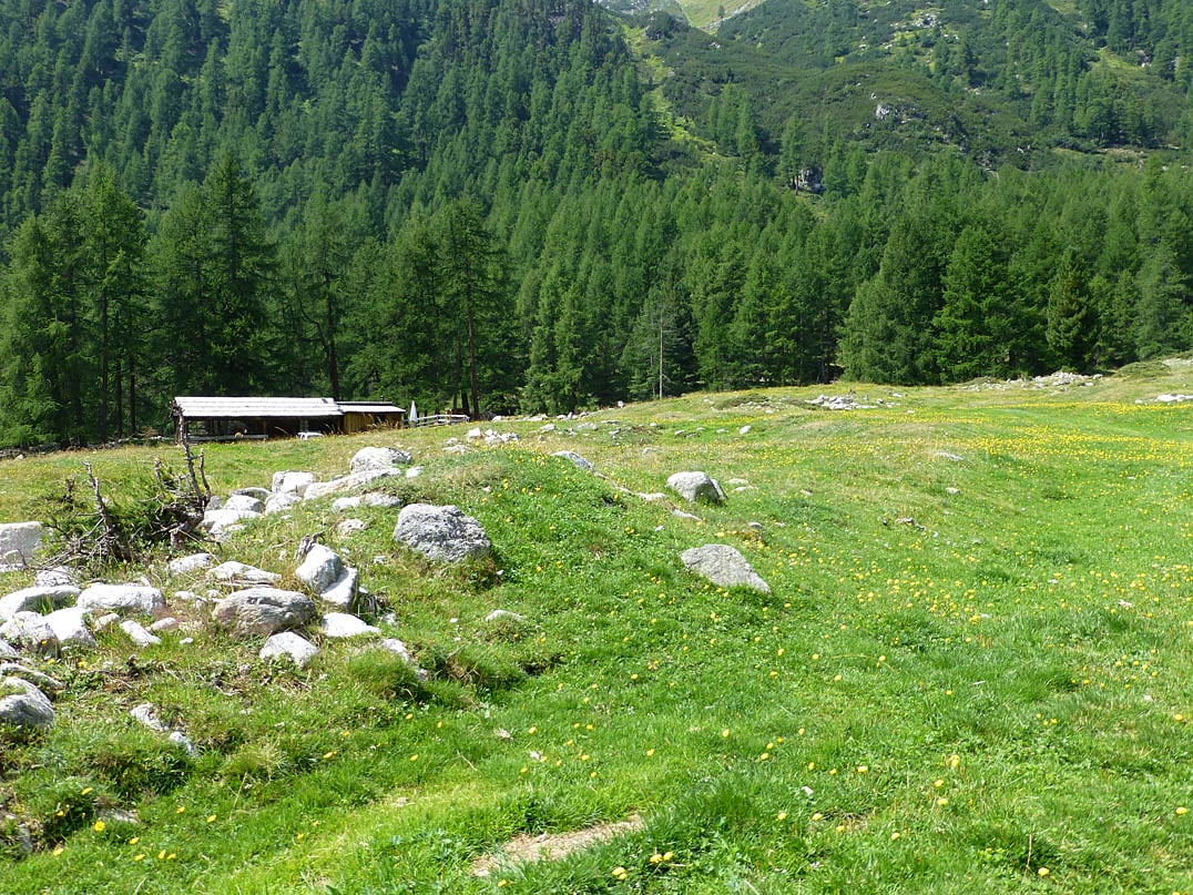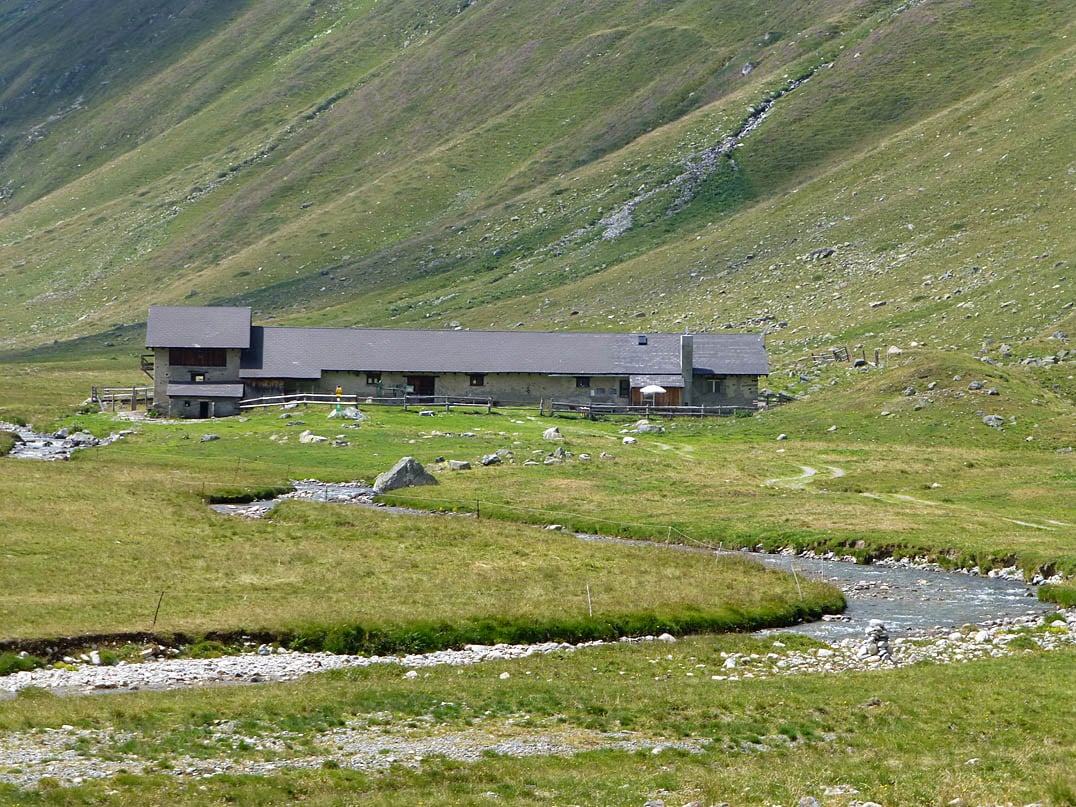 Mit stets nur leichtem Anstieg passieren wir nach etwa vier Kilometern die Alp Pignaint (1898m). Nur knapp einen Kilometer weiter überqueren wir den Ova Funtauna über eine kleine Brücke und sehen uns anschließend einem, von grobem Untergrund geprägten und steiler werdenden Wirtschaftsweg ausgesetzt, der jedoch anfangs noch gut befahrbar ist. Erst etwa siebenhundert Meter weiter, als sich der Weg wieder rechts von Bach befindet, stehen zwei steile Rampen auf dem Plan, die sich je Fahrkönnen und Kondition nur zum Teil fahren lassen. Stellenweise kommen uns Biker entgegen, die von Davos über den Scalettapass ins Engadin fahren. Nach zwei Kilometern Auffahrt erreichen wir die Hochebene rund um die Alp Funtauna (2192m). Die in den Sommermonaten bewirtschaftete Hütte glänzt mit hausgemachten Produkten und einem eindrucksvollen Rundumblick auf die unbewaldeten Hänge der benachbarten 3000er Gipfel.