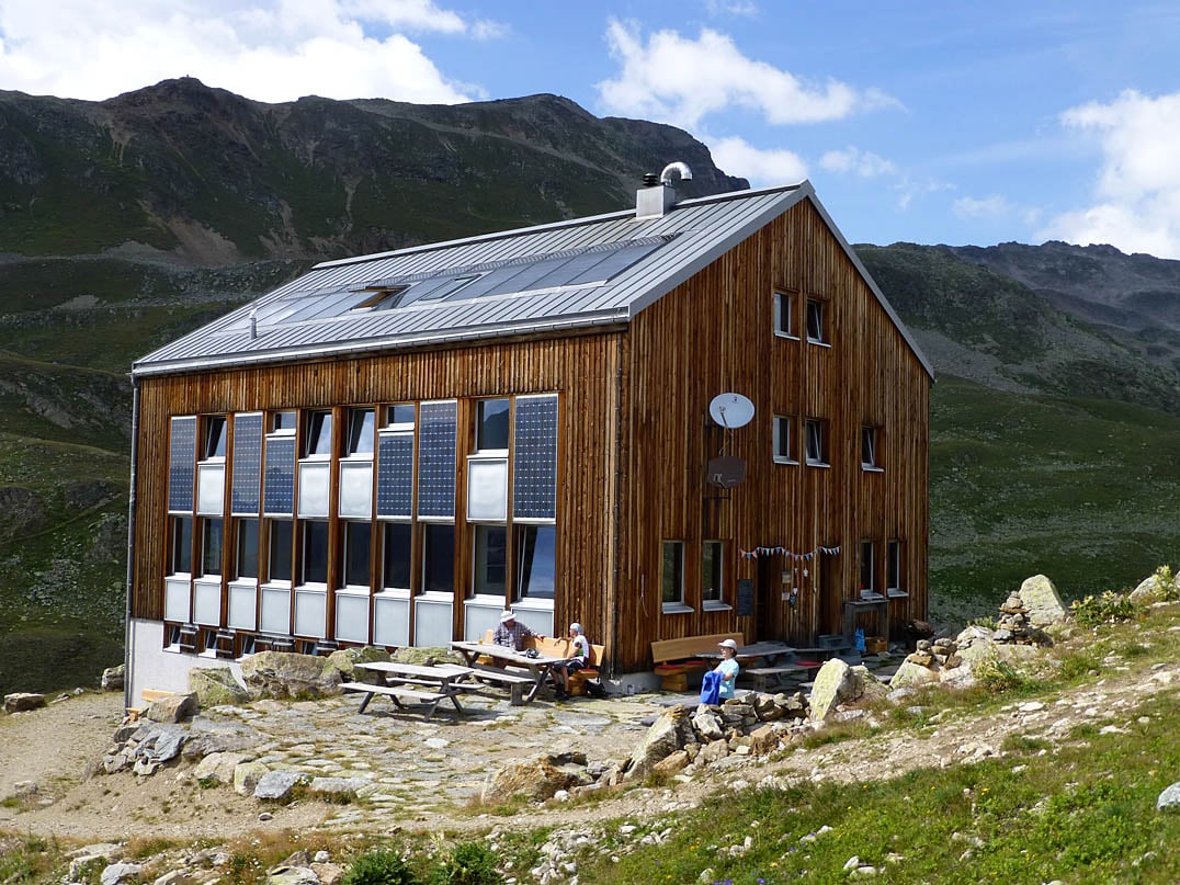 Wer nicht mehr genügend Reserven hat oder gar auf die anschließende Trail-Etappe verzichten möchte, kann die Alp Funtauna als lohnenswertes Ziel dieser Tour betrachten, sich von der Auffahrt erholen, die hochalpine Natur genießen und sich anschließend auf der bekannten Route zurück zum Ausgangspunkt machen. Für alle, die die Weiterfahrt zur Keschhütte des Schweizer Alpen-Club (SAC) anstreben, führt unmittelbar hinter der Hütte ein Trail durch das Val Funtauna und anschließend in das Val dal Tschüvel. Anfangs stets gut zu fahren, folgen wir dem Trail durch den Talverlauf. Je Fahrkönnen kann es hier bereits an einigen Stellen vorkommen, dass man absteigen muss. Nach einer guten Weile erkennen wir in der Ferne den Gipfel des Piz Kesch (3417m), den höchsten Berg der Albula-Alpen, sowie das in der Sonne reflektierende Dach der Keschhütte (2632m). Die letzten dreißig bis vierzig Minuten muss das Bike mehr geschoben werden, als dass man fahren könnte. Aus diesem Grund eignet sich die Weiterfahrt von der Alp Funtauna zur Keschhütte auch nicht für E-Bikes. An der Keschhütte (Chamanna digl Kesch) angekommen, haben wir stolze 2632 Meter über dem Meeresspiegel erreicht und gönnen uns eine ausgiebige Pause, bei der wir bei hausgemachtem Kuchen die wilde Landschaft mit den Gletschern genießen können. Ein eindrucksvolles Panorama, das für die Mühen entlohnt.